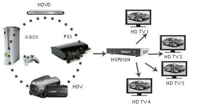 -The HSP0104 is a four outputs HDMI splitter